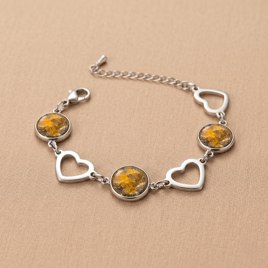 Armband Juuls | rvs design schakelarmband met hartjes, zwart, bruin en oker