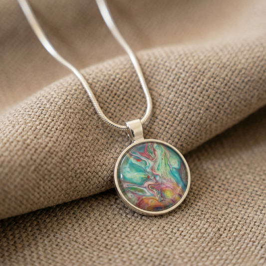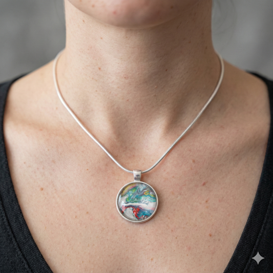 Ketting Wien | rvs design met kleurenprint, turquoise, wit, rood en een vleugje geel
