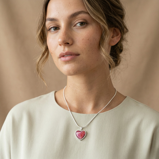 Ketting Juuls | rvs design hart met kleurenprint, roze, wit