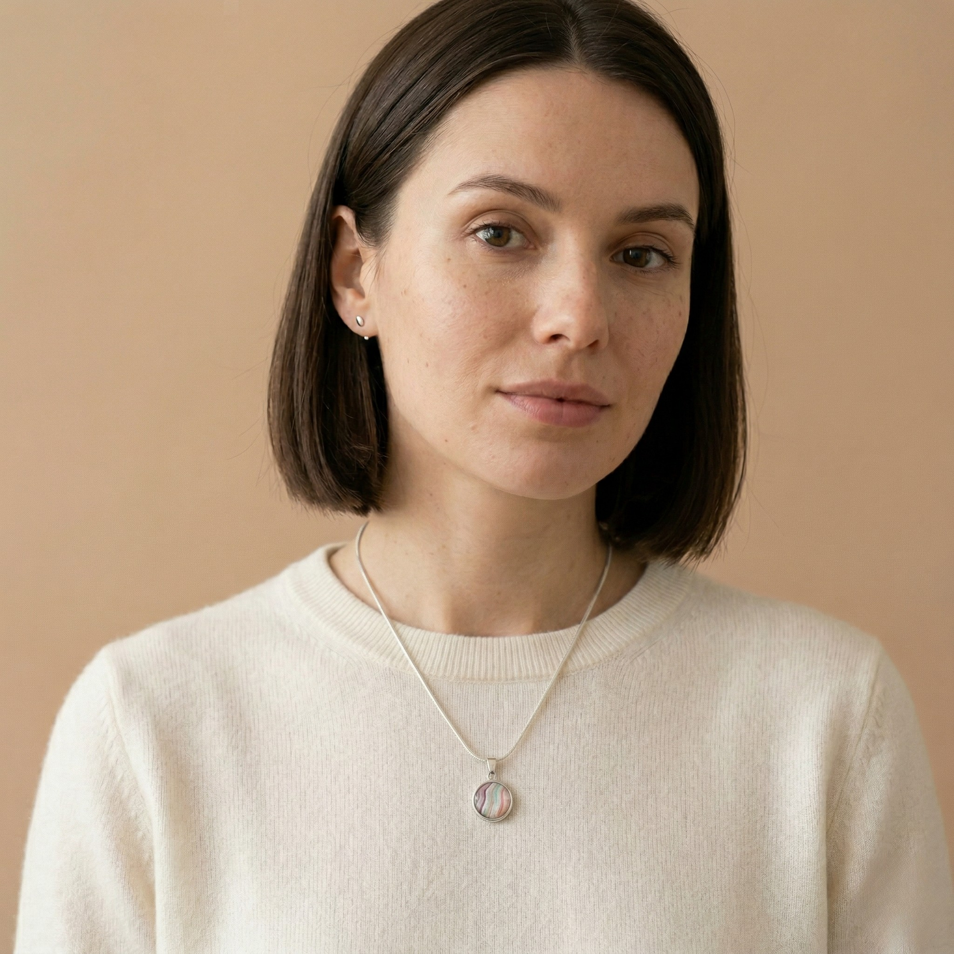 Ontmoet de kleine krachtpatser: ketting Wien. Met haar subtiele hanger van 16 mm is dit sieraad perfect voor wie houdt van minimalistische elegantie met een kleurrijke twist. De exclusieve print is op elke hanger anders, waardoor jouw sieraad net zo uniek is als jij.